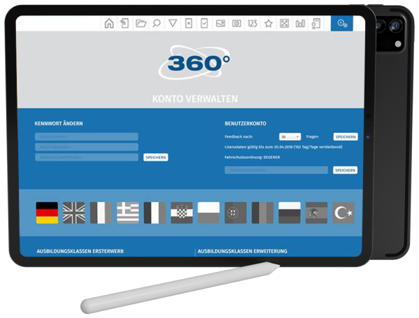 - Üben am PC (mit der 360°- Software zu Haus, unterwegs oder in der Fahrschule).